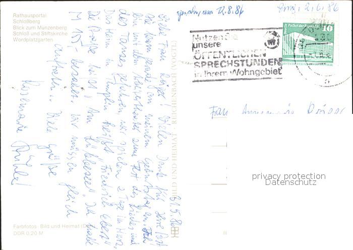 72373102 alte Postkarte Quedlinburg Harz Rathausportal Schlossberg Muenzenberg Schloss Stiftskirche Wordplatzgarten Fachwerkhaeuser postalisch gelaufen Erhaltung siehe scans KatCode: 11110015085235