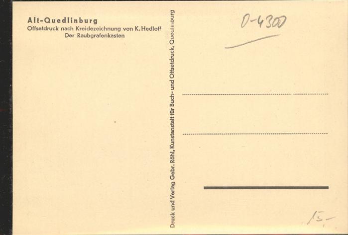 41422352 Quedlinburg Harz Raubgrafenkasten postalisch nicht gelaufen Erhaltung siehe scans Alte Ansichtskarte Postkarte hz_W Katcode 11110015085235