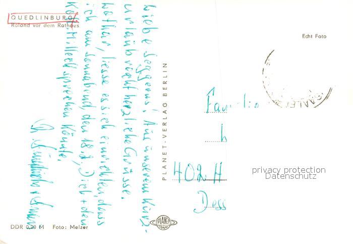 73097342 alte Postkarte Quedlinburg Harz Roland Rathaus postalisch gelaufen Erhaltung siehe scans [KathaD81] KatCode: 11110015085235