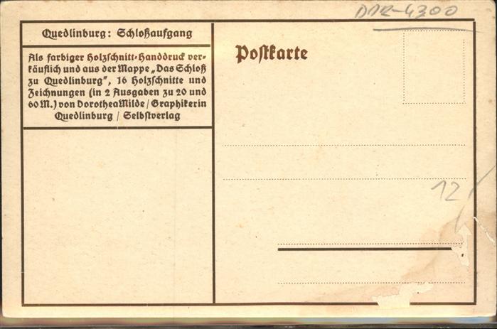 41422373 Quedlinburg Harz Schlossaufgang Illustration postalisch nicht gelaufen Erhaltung siehe scans KatCode: 11110015085235