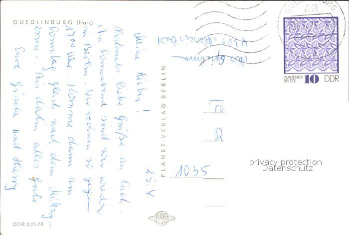 72025636 alte Postkarte Quedlinburg Harz Teilansicht postalisch gelaufen Erhaltung siehe scans KatCode: 11110015085235