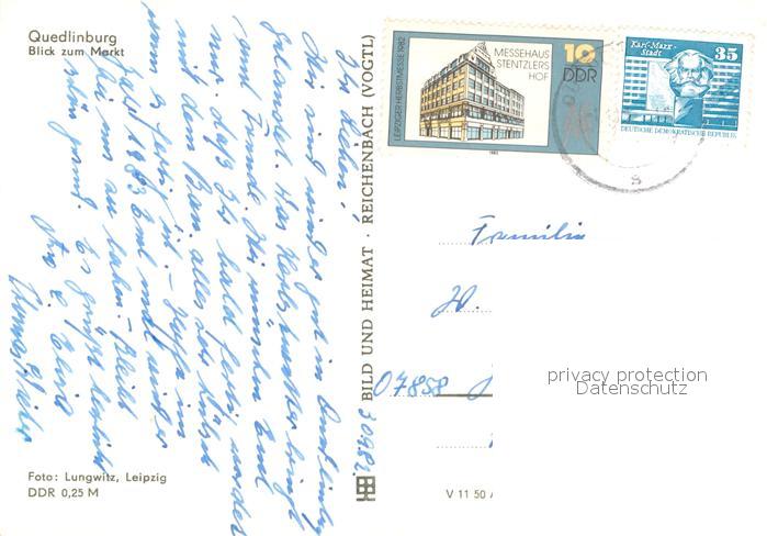 73624484 alte Postkarte Quedlinburg Marktblick postalisch gelaufen Erhaltung siehe scans [FriedD77] KatCode: 11110015085235