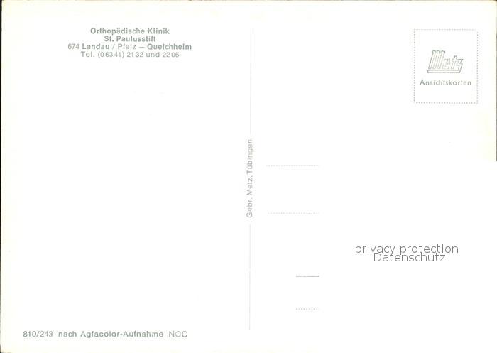 72535240 Queichheim Orthopaedische Klinik St Paulusstift postalisch nicht gelaufen Erhaltung siehe scans [FriedD77 kt118box] KatCode: 11110007313000