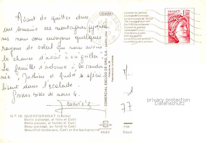 old postcard Querforadat Paisaije al fondo el Cadi postalisch gelaufen Erhaltung siehe scans [FriedD77]