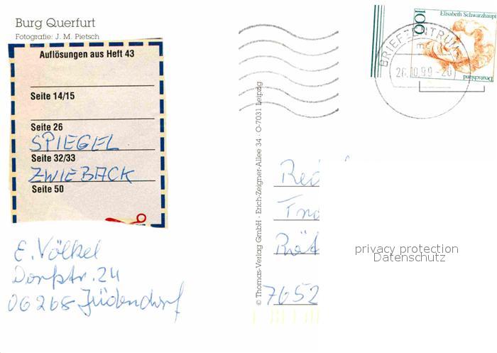 72757892 alte Postkarte Querfurt Burg Querfurt postalisch gelaufen Erhaltung siehe scans [NatalD47] KatCode: 11110015088305