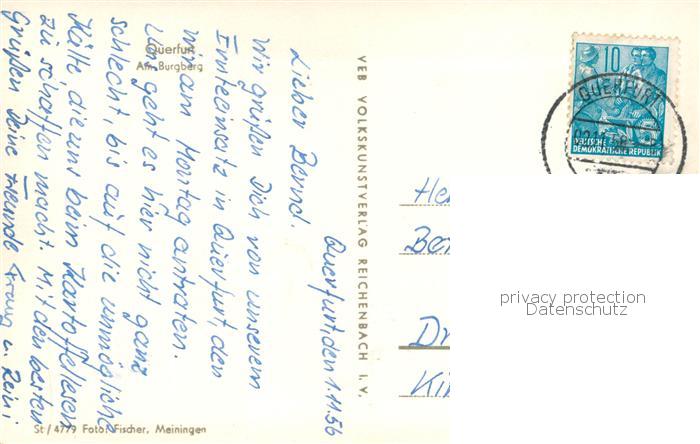 73751142 Querfurt Sachsen-Anhalt Am Burgberg postalisch gelaufen Erhaltung siehe scans [WerneD78] alte Postkarte Wern Katcode 11110015088305