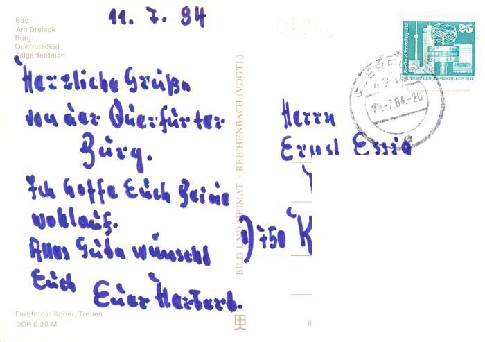 73948075 Querfurt Sachsen-Anhalt Am Dreieck Burg Querfurt Sued Talgartenteich postalisch gelaufen Erhaltung siehe scans [WerneD78] alte Postkarte Wern Katcode 11110015088305