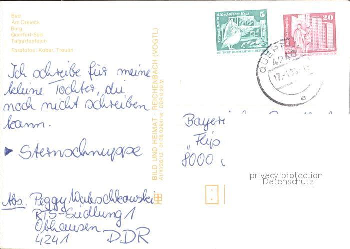 72461688 alte Postkarte Querfurt Sachsen-Anhalt Bad Dreieck Burg Talgartenteich postalisch gelaufen Erhaltung siehe scans KatCode: 11110015088305