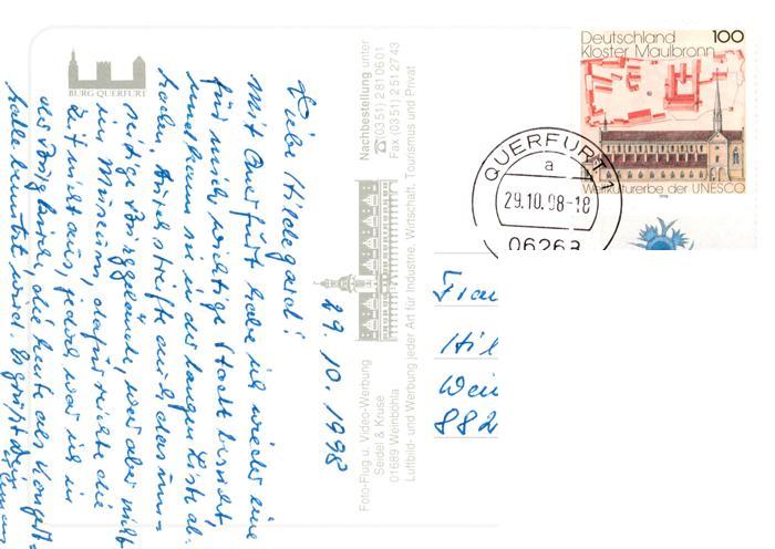 73945506 Querfurt Sachsen-Anhalt Burg postalisch gelaufen Fliegeraufnahme Erhaltung siehe scans [FriedD77] Fliegeraufnahme alte Postkarte Frie Katcode 11110015088305