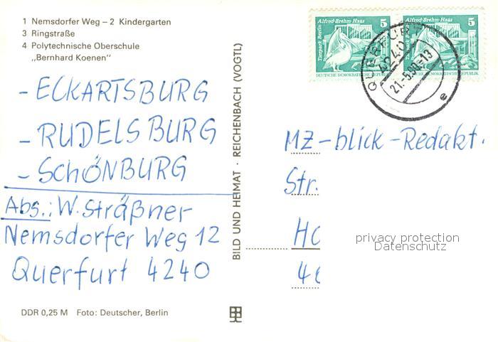 73723028 Querfurt Sachsen-Anhalt Nemsdorfer Weg Kindergarten Ringstrasse Polytechn Oberschule Bernhard Koenen postalisch gelaufen Erhaltung siehe scans [WerneD78] alte Postkarte Wern Katcode 11110015088305