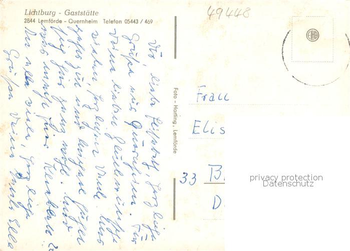 73855355 alte Postkarte Quernheim Diepholz Lichtburg Gaststaette Panorama Blick vom Stemweder Berg Dorfstrasse Tulpenfeld postalisch gelaufen Erhaltung siehe scans [FriedD77] KatCode: 11110003251029