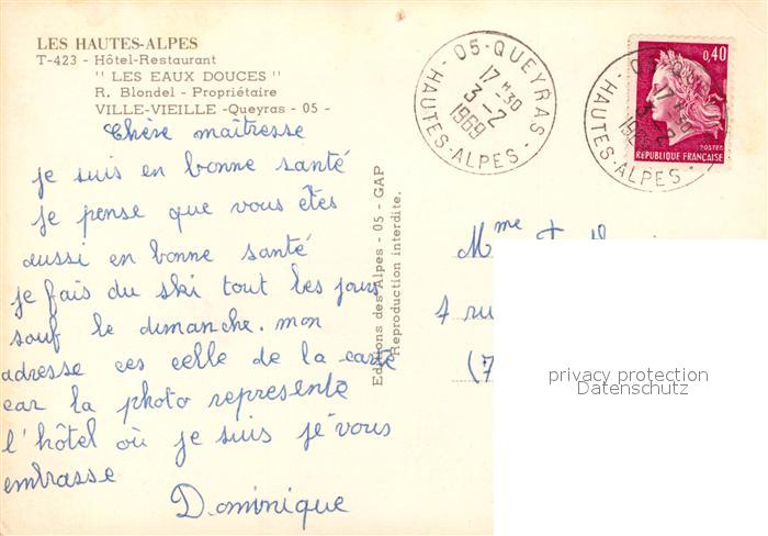 carte postale Queyras La Monta Hôtel Restaurant Les Eaux Douces postalisch gelaufen Erhaltung siehe scans [FriedD77]