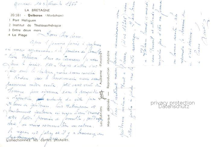 13790577 Quiberon 56 Morbihan Port Haliguen Institut de Thalassotherapie Entre deux mers La Plage postalisch nicht gelaufen Erhaltung siehe scans [WerneD78] Wern Katcode 11170056156186