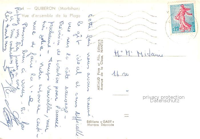13590835 Quiberon Morbihan Ensemble Plage postalisch gelaufen Erhaltung siehe scans [KathaD81] carte postale Kath Katcode 11170056156186