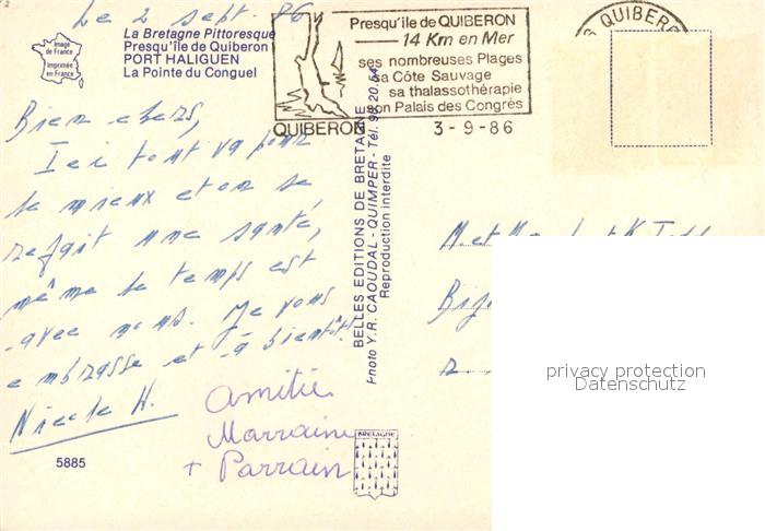 13606706 carte postale Quiberon Morbihan Fliegeraufnahme Port Haliguen postalisch gelaufen Erhaltung siehe scans [LiesaD40] KatCode: 11170056156186