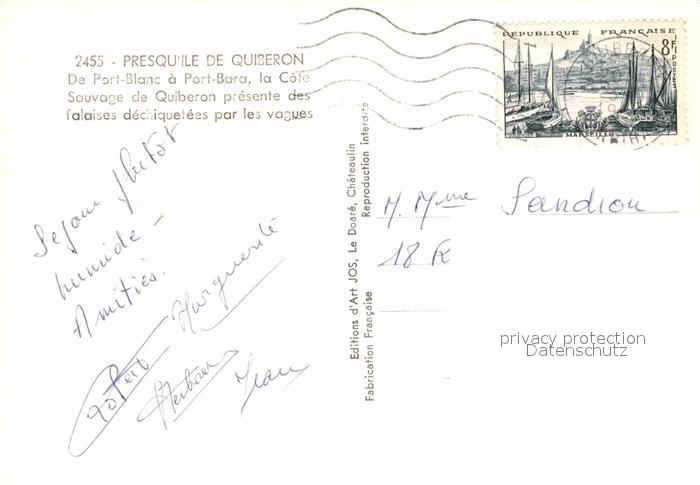 12764222 carte postale Quiberon Morbihan Port-Blanc Port-Bara postalisch gelaufen Erhaltung siehe scans [LiesaD40] KatCode: 11170056156186
