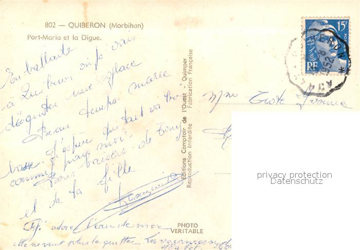 13581901 Quiberon Morbihan Port Maria et la digue bateaux de pêche postalisch gelaufen Erhaltung siehe scans [FriedD77] carte postale Frie Katcode 11170056156186