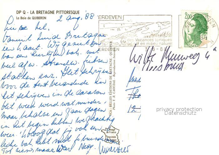 13062261 carte postale Quiberon Morbihan Presqu ile Baie Landkarte postalisch gelaufen Erhaltung siehe scans [FriedD77] KatCode: 11170056156186