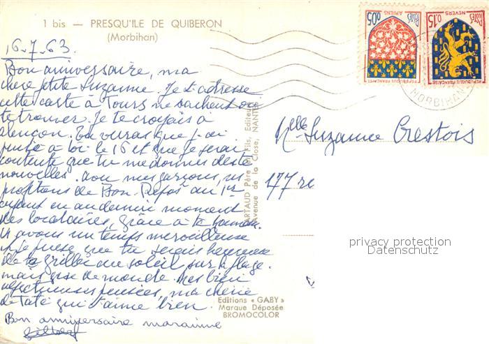 13580866 carte postale Quiberon Morbihan Presqu’Ile de Quiberon postalisch gelaufen Erhaltung siehe scans [WerneD78] KatCode: 11170056156186