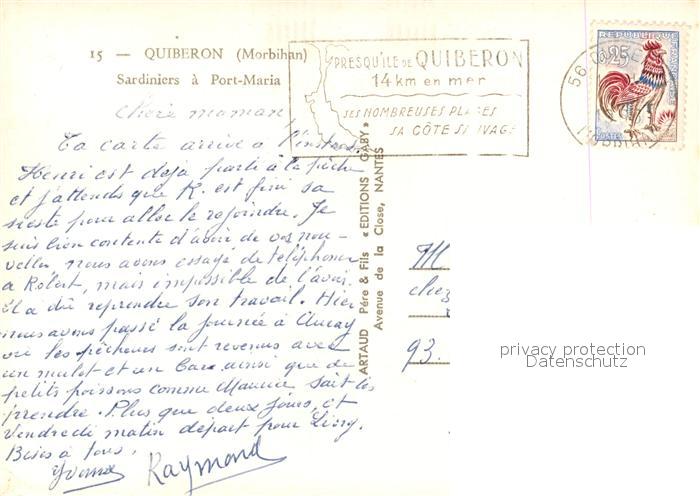 13587800 Quiberon Morbihan Sardiniers Port-Maria postalisch gelaufen Erhaltung siehe scans [LiesaD40] carte postale Lies Katcode 11170056156186