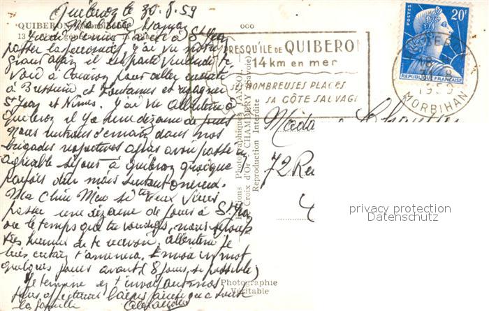 13586568 Quiberon Morbihan Vue generale de la Plage postalisch gelaufen Erhaltung siehe scans [WerneD78] carte postale Wern Katcode 11170056156186