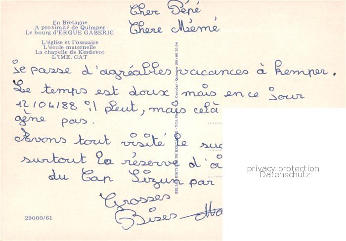13797738 Quimper 29 Finistere Le bourg d’Ergue Gaberic Eglise et l’ossuaire Ecole maternelle La chapelle de Kerdevot l’IME CAT postalisch nicht gelaufen Erhaltung siehe scans [WerneD78] Wern Katcode 11170029429232