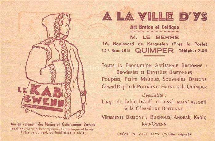 14105426 QUIMPER 29 Finistere Le Kab-Gwenn Art Breton et Celtique Ancien vêtement des Marins et Goemonniers Bretons postalisch nicht gelaufen Werbekarte (keine Postkarte) Erhaltung siehe scans [FriedD77] Werbekarte (keine Postkarte) Frie Katcode 11170029429232