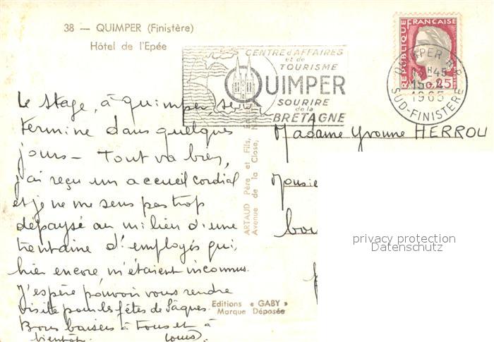 13580963 Quimper Hotel de l’Epee postalisch nicht gelaufen Erhaltung siehe scans [WerneD78] Wern Katcode 11170029429232