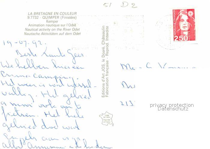 12771580 carte postale Quimper Kemper Animation nautique sur l’Odet postalisch gelaufen Erhaltung siehe scans [WerneD78] KatCode: 11170029429232