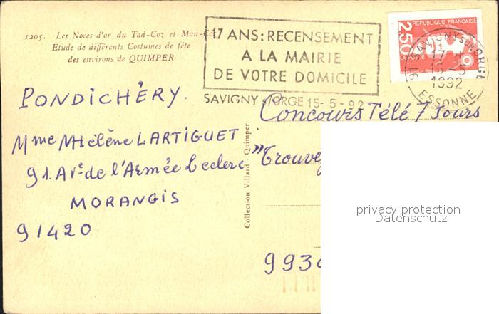 11697396 carte postale Quimper Les Noces d or du Tad Coz et Man Coz Costumes de fete postalisch gelaufen Erhaltung siehe scans KatCode: 11170029429232