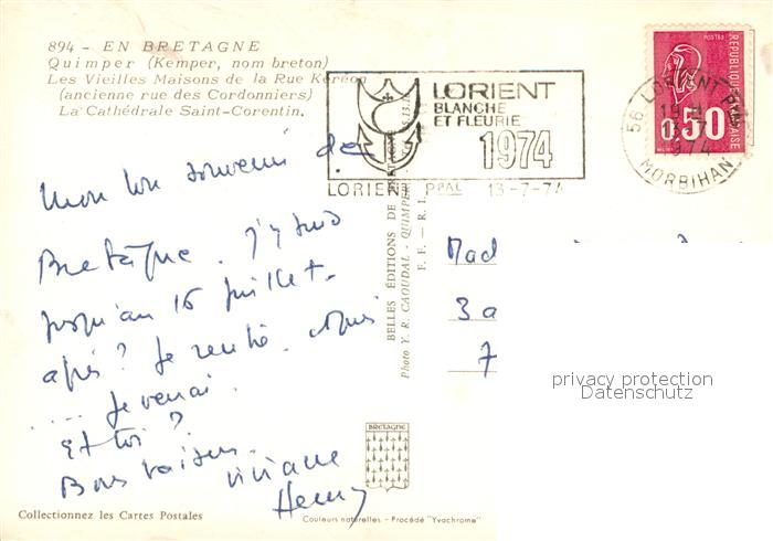 13519525 carte postale Quimper Vieilles Maisons de la Rue Kereon Cathedrale Saint Corentin postalisch gelaufen Erhaltung siehe scans [KathaD81] KatCode: 11170029429232