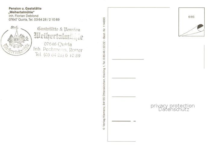 73662883 Quirla Pension Restaurant Weihertalm?hle postalisch nicht gelaufen Erhaltung siehe scans [LiesaD40] KatCode: 11110016074069
