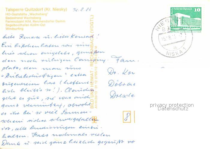 72626457 alte Postkarte Quitzdorf See Talsperre HO Gaststaette Badestrand Wacheberg Ferienobjekt Segelboothafen Windsurfing postalisch gelaufen Erhaltung siehe scans [FriedD77] KatCode: 11110014284300