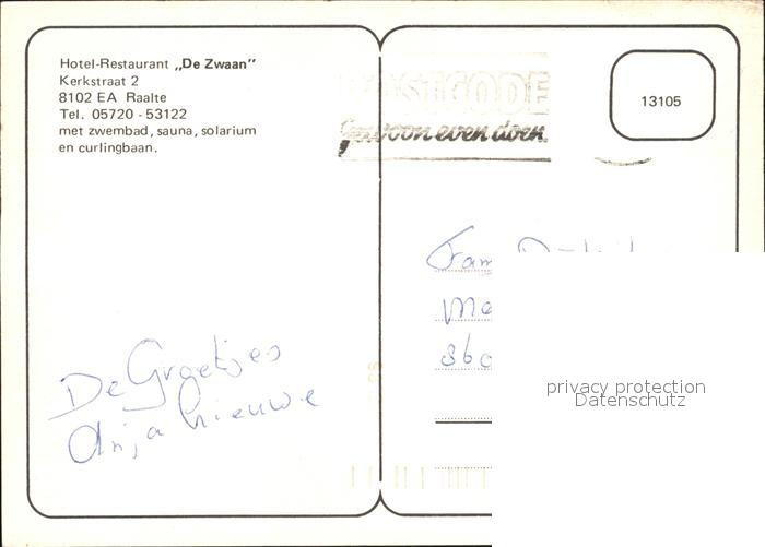 Raalte Hotel Restaurant De Zwaan postalisch nicht gelaufen Erhaltung siehe scans [AntonD74]