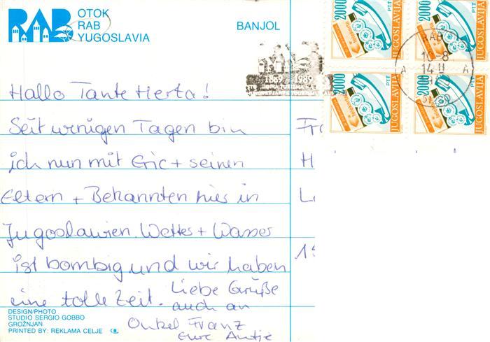 old postcard Rab Croatia Fliegeraufnahme postalisch gelaufen Erhaltung siehe scans [FriedD77]