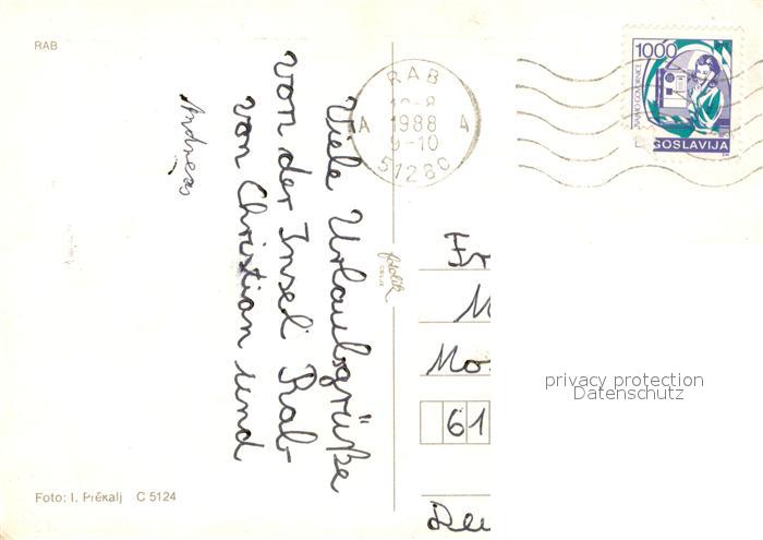 old postcard Rab Croatia Fliegeraufnahme postalisch gelaufen Erhaltung siehe scans [WerneD78]