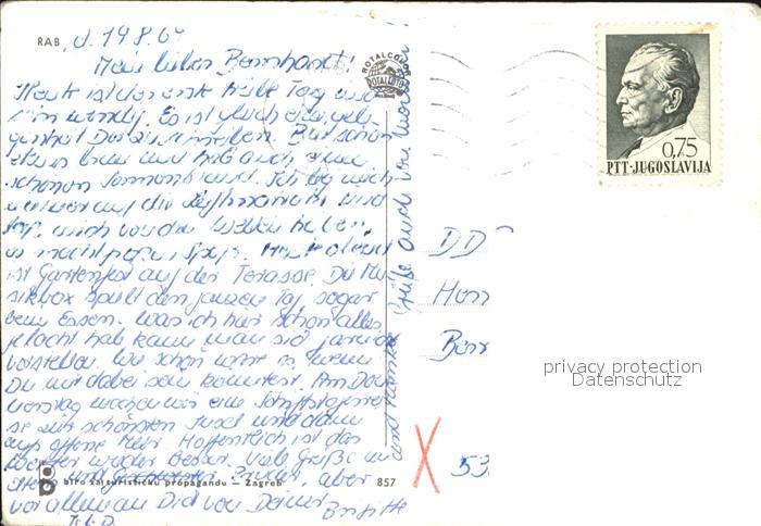 old postcard Rab Croatia Fliegeraufnahme postalisch gelaufen Erhaltung siehe scans