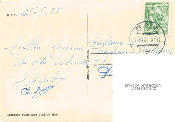 74079562 old postcard Rab Croatia Kuestenpanorama postalisch gelaufen Erhaltung siehe scans [FriedD77] KatCode: 11260