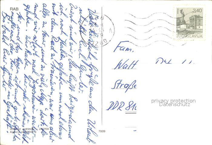 old postcard Rab Croatia Luftbild postalisch gelaufen Erhaltung siehe scans