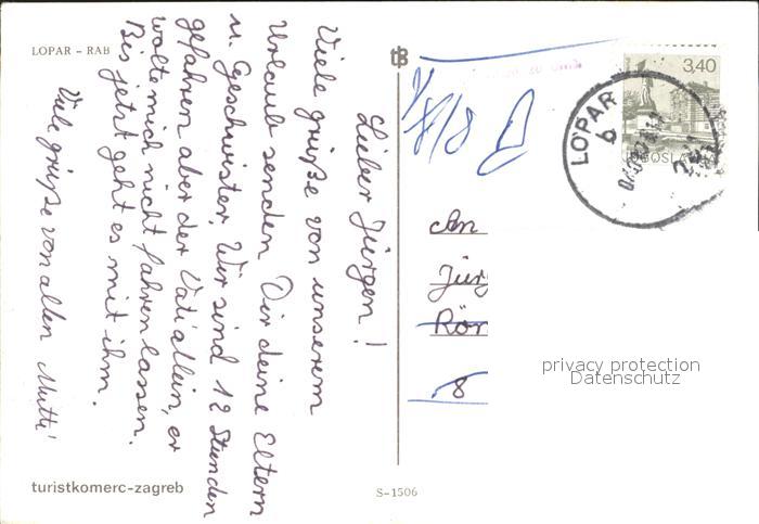 old postcard Rab Kroatien Camping Strand postalisch gelaufen Erhaltung siehe scans