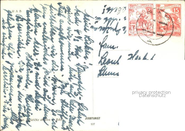 old postcard Rab Kroatien Fliegeraufnahme postalisch gelaufen