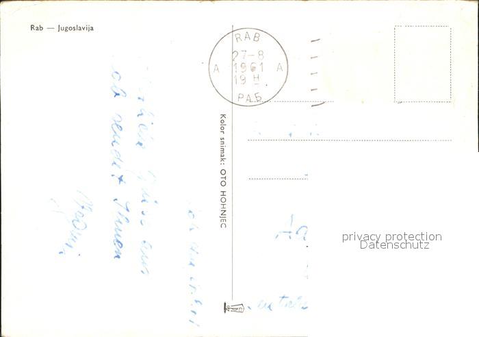 old postcard Rab Kroatien Partie am Strand postalisch gelaufen Erhaltung siehe scans