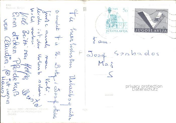 old postcard Rab Kroatien Restoran Banjol postalisch gelaufen Erhaltung siehe scans