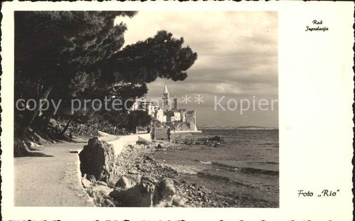old postcard Rab Kroatien Uferweg postalisch gelaufen Erhaltung siehe scans