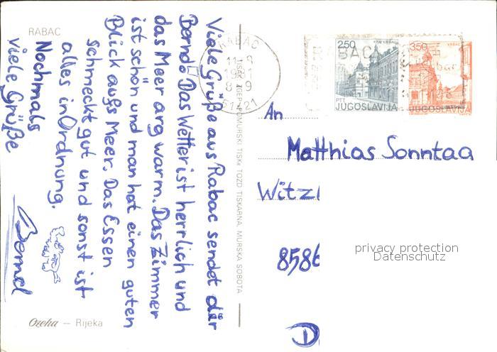 old postcard Rabac Kroatien Fliegeraufnahme postalisch gelaufen Erhaltung siehe scans [NatalD47]