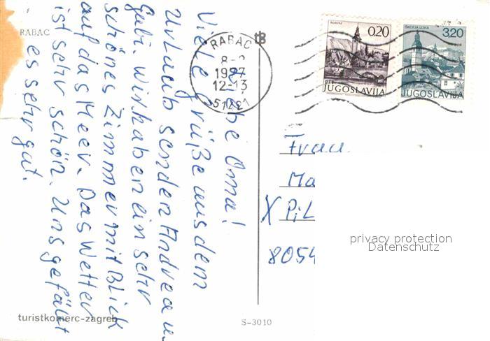 old postcard Rabac Kroatien Fliegeraufnahme postalisch gelaufen Erhaltung siehe scans [LiesaD40]