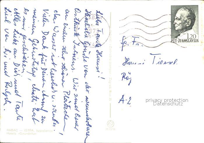 old postcard Rabac Kroatien Hotels Girandella postalisch gelaufen