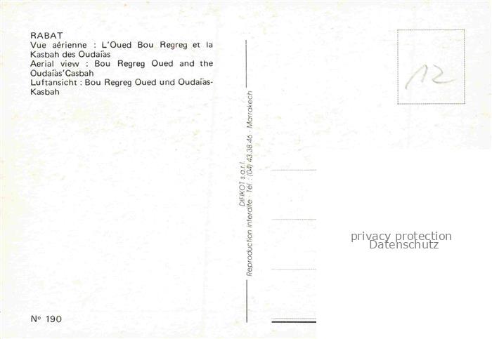 74142030 RABAT Maroc Vue aerienne L’Oued Bou Renreg et la Kasbah des Oudaias postalisch nicht gelaufen Erhaltung siehe scans [WerneD78] KatCode: 18300