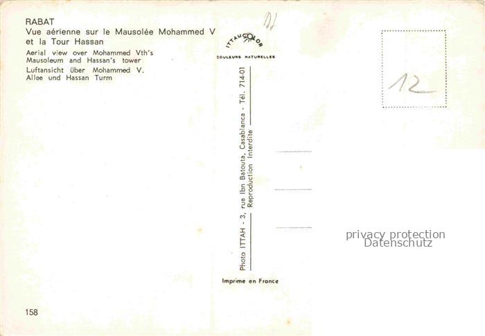 74142034 RABAT Maroc Vue aerienne sur le Mausolee Mohammed V et la Tour Hassan postalisch nicht gelaufen Erhaltung siehe scans [WerneD78] KatCode: 18300