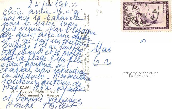 old postcard Rabat Marokko Avenue Mohammed postalisch gelaufen Erhaltung siehe scans [FriedD77]